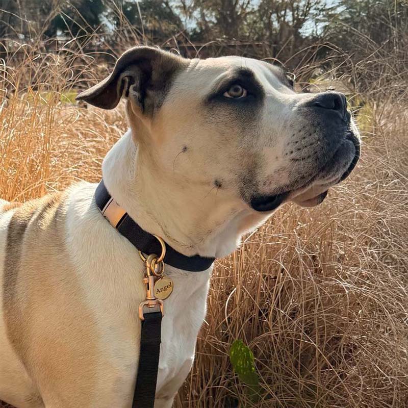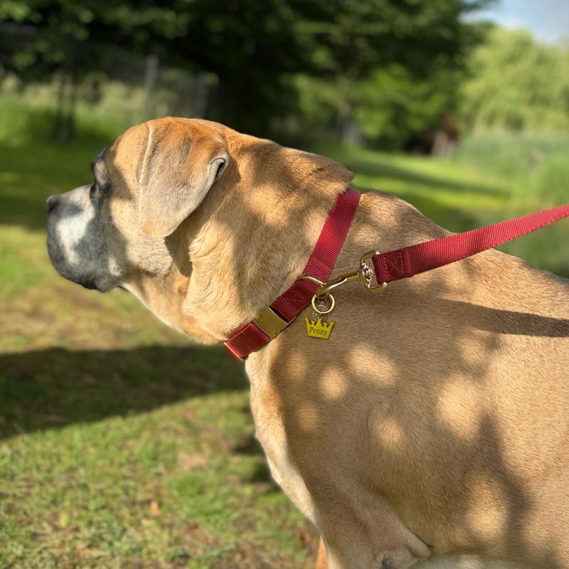 Our dog tags are crafted from high quality stainless steel with a 18K gold-filled finish. It’s strong, long lasting, and safe for everyday use, even in rain, mud, or playtime. Each tag is engraved with precision to ensure your details stay clear and readable over time.