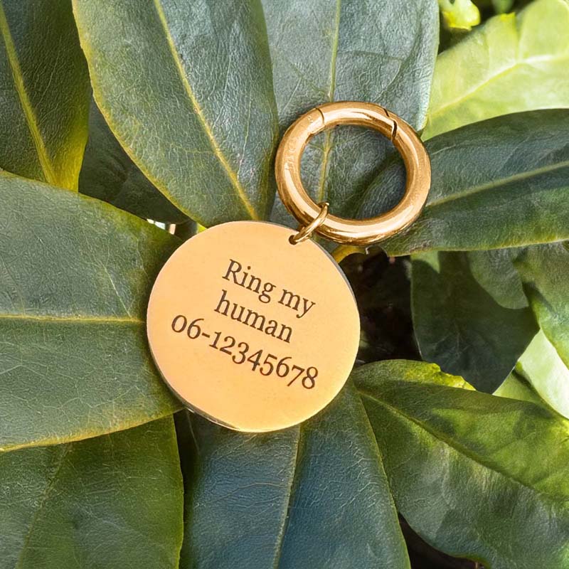 It allows for sleek, polished finishes (like gold tones!) while remaining rust-resistant and comfortable for your dog to wear. It’s also lighter than steel or brass, making it ideal for daily use.
