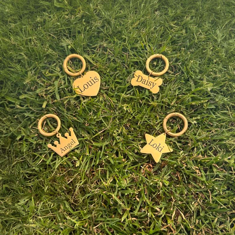 Complete the look with an engraved dog tag. Add your dog’s name and/or your number so style meets peace of mind. Designed to match our collars and leashes with sleek, gold-tone hardware and everyday durability.