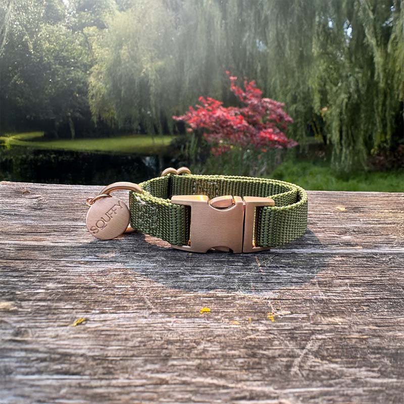 Morbido, leggero e pensato per le prime avventure. Questo guinzaglio classico è perfetto per i cuccioli, realizzato in nylon resistente che è delicato sulla mano e facile da gestire durante le passeggiate. La texture liscia e l’elegante colore verde salvia si abbinano perfettamente agli accessori dorati per un look senza tempo.